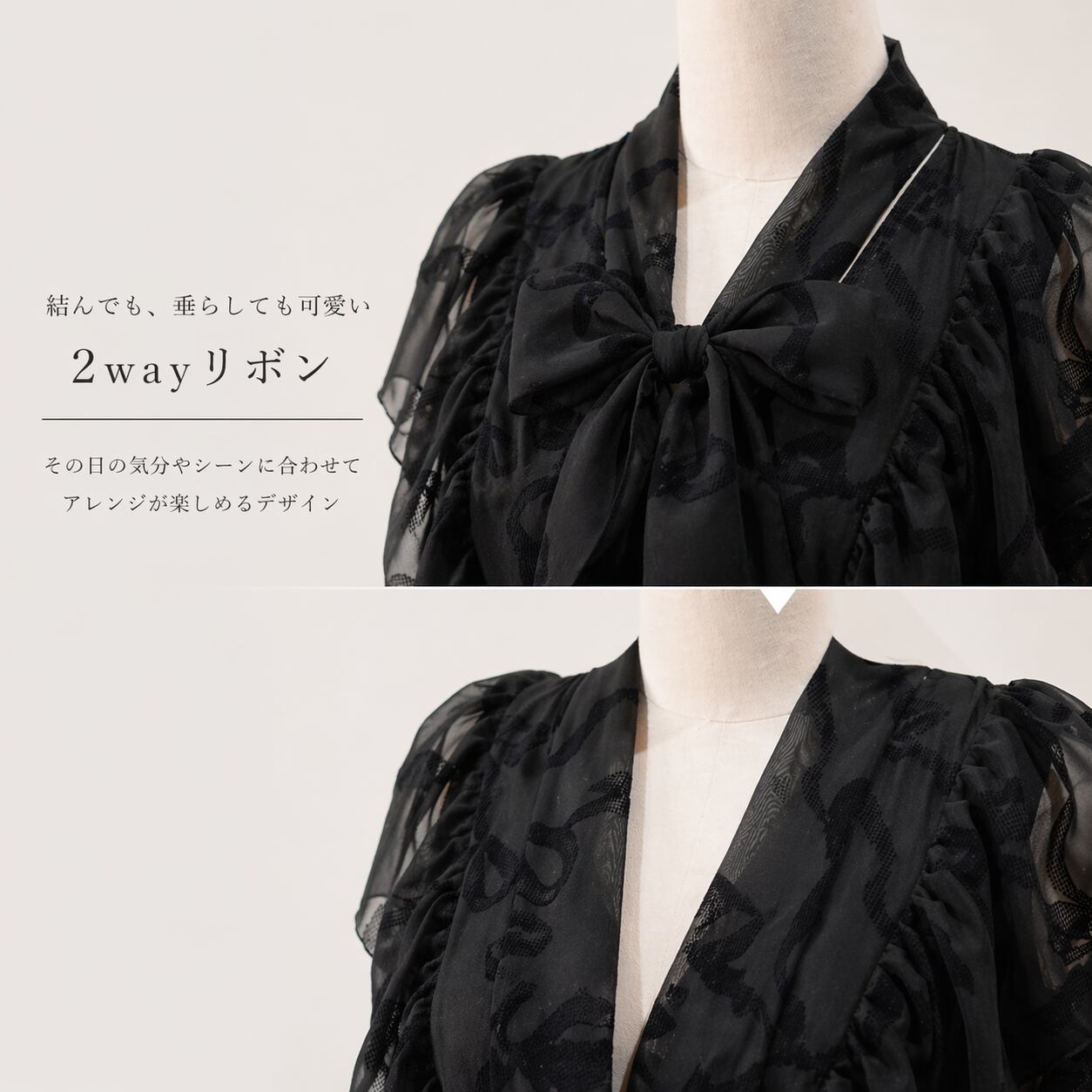 軽やかに揺れるシアー素材に、繊細なリボンモチーフを重ねた一着。