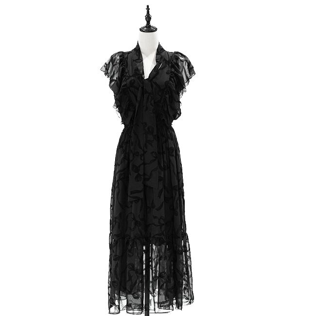 軽やかに揺れるシアー素材に、繊細なリボンモチーフを重ねた一着。