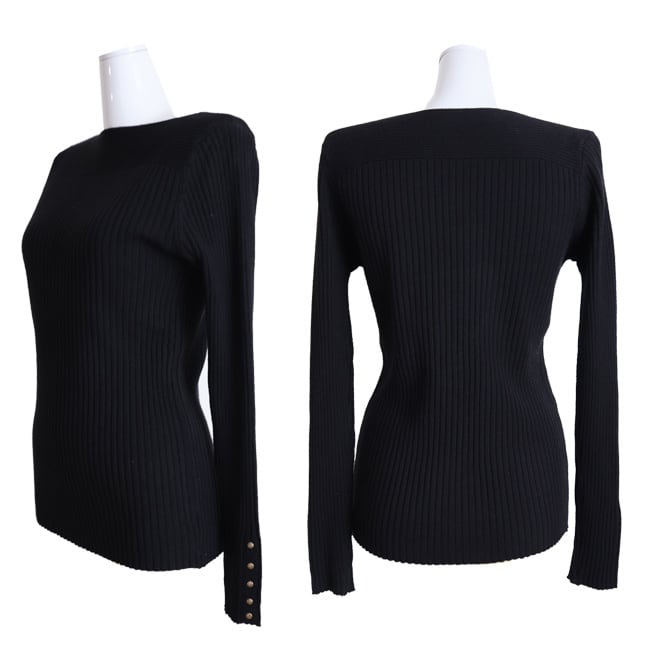 あると便利なニットは体にフィットしてくれて、スカートに合わせやすくパンツに合わせてもスタイルが良く見えるデザインですよね♪ボートネックなのですっきり見せてくれてフレアスカートとの相性も抜群ですよ♪