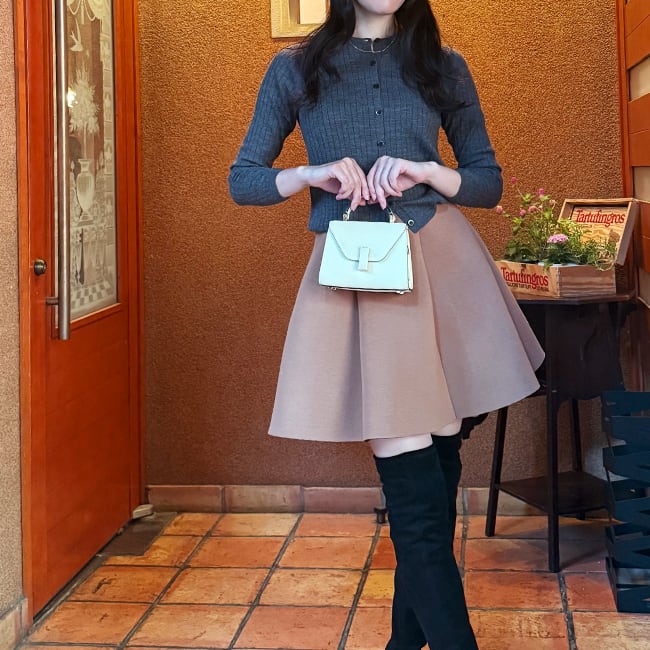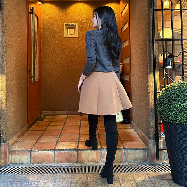 さりげないプリーツが全体の広がりを上品に仕上げてくれています。