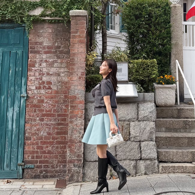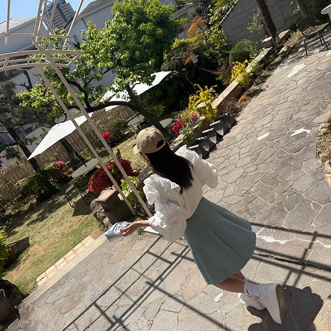 さりげないプリーツが全体の広がりを上品に仕上げてくれています。
